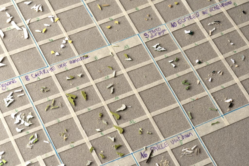 Tout part d’un dessin qui se matérialise par une sélection minutieuse des matières dont l’agencement s’apparente à un rébus, où chaque mot ne trouve son sens que par la cohérence de la phrase que je veux écrire.