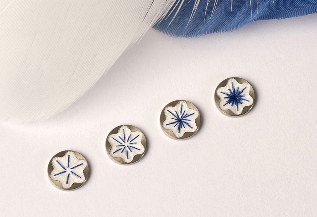 2. Réaliser un dégradé de fragments de plumes en formant le logo Montblanc, qui sera appliqué à l’extrémité du capuchon.