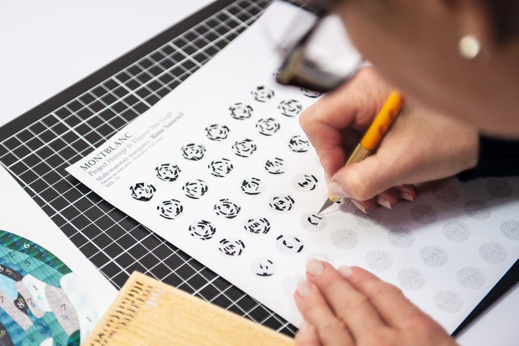 Motif en marqueterie multi-matières inspiré des paysages naturels chers à Vincent Van Gogh