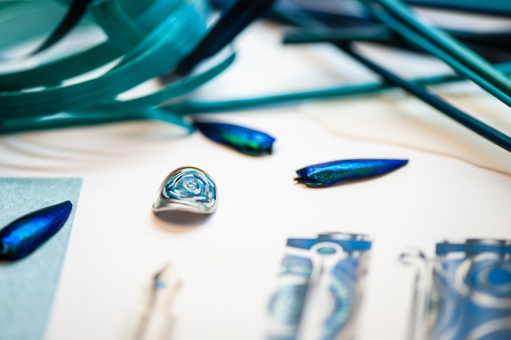 nacre blanche, sycomore, tulipier, paille, élytre de scarabée.